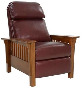 Characteristic of the arts and crafts period, this Mission 3 way low leg recliner offers classic craftsman styling and boast luxurious comfort with zippered semi attached back pillows, tight bullnose seat with pocketed coil springs encased in foam and wrapped in Dacron. Footrest extension for extra leg support.Read More