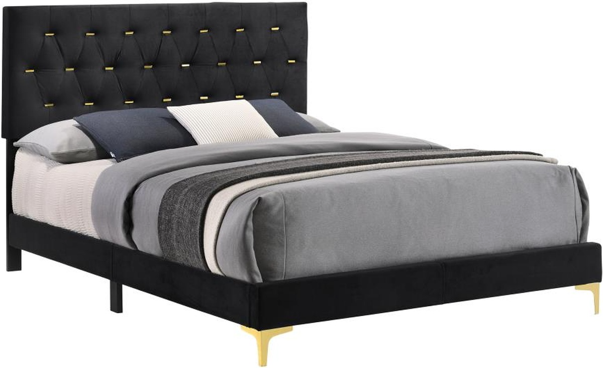 Transform your bedroom oasis into a dramatic interior with this modern glam panel bed. Upholstered in plush, black velvet throughout the foam padded headboard and sides, this stunning bed offers a glamorous expression to your space. Place this modern bed in a bedroom for a chic and sophisticated look.Read More
