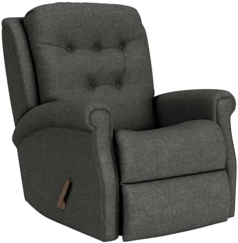 Minnie is a traditional recliner with fresh and casual features. Its set-back rounded arms are accented in the front with welt cording. The fully padded footrest and button-tufted back cushion add comfort and style to this timeless piece.Read More