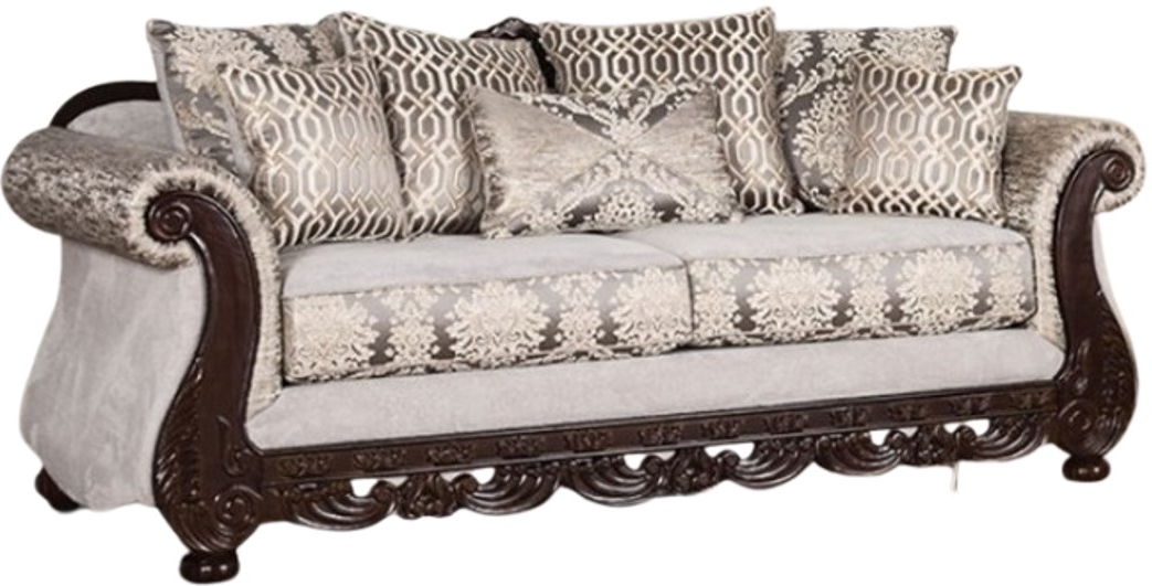 The Furniture of America® Catalonia Beige/Dark Cherry Sofa combines comfort and durability with its soft beige upholstery and rich dark cherry wood accents. Its cozy cushions and sturdy construction make it a perfect addition to any living room, offering both style and relaxation.Read More