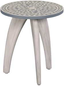 Add artistic charm to your space with this gray Blossom inlay accent table crafted from mango solids. Its detailed inlay design creates a refined focal point while the compact form fits effortlessly beside seating. Blending craftsmanship and style, it enhances both modern and traditional interiors.Read More