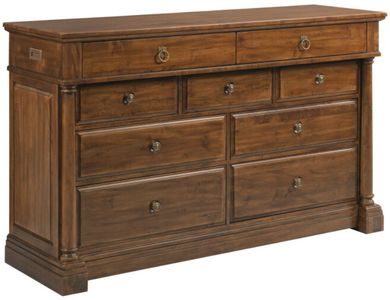 The Kincaid® Bridgetown dresser showcases timeless craftsmanship with its solid maple construction and warm heritage finish. Featuring multiple spacious drawers with smooth glides and elegant hardware, it combines durability and refined style, perfect for adding charm and organization to any bedroom.Read More