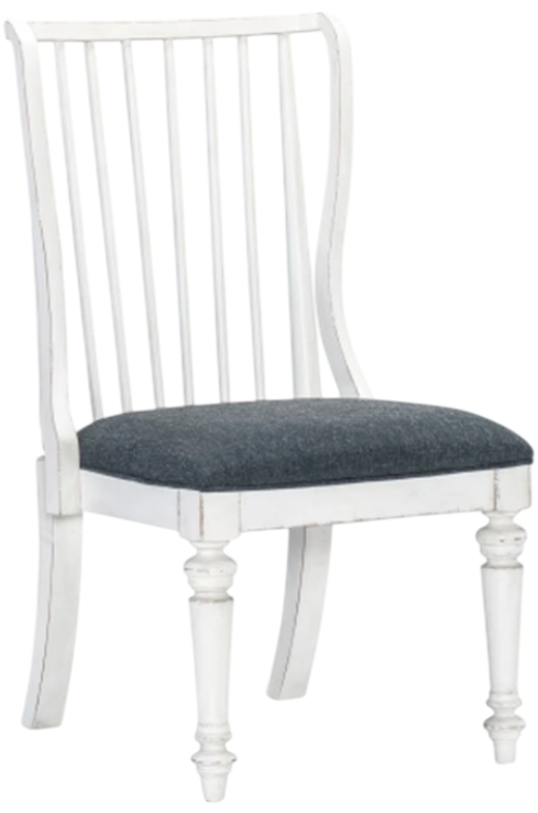 The Legacy Classic Cottage Park Aged White/Caitlin Cobalt Slat Back Side Chair features a classic slatted back with an aged white finish and a comfortable cobalt upholstered seat. Its durable construction and supportive structure make it ideal for everyday dining while adding a fresh, inviting touch.Read More
