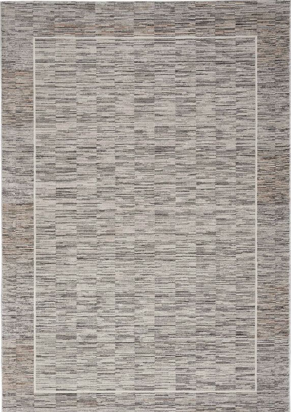 Refresh your space with the clean linear pattern of this geometric rug from the Desire Collection. The heathered dark grey base is overlaid with a broken stripe design, contrasting charcoal and white linear border, and subtly carved accents that create visual interest.Read More