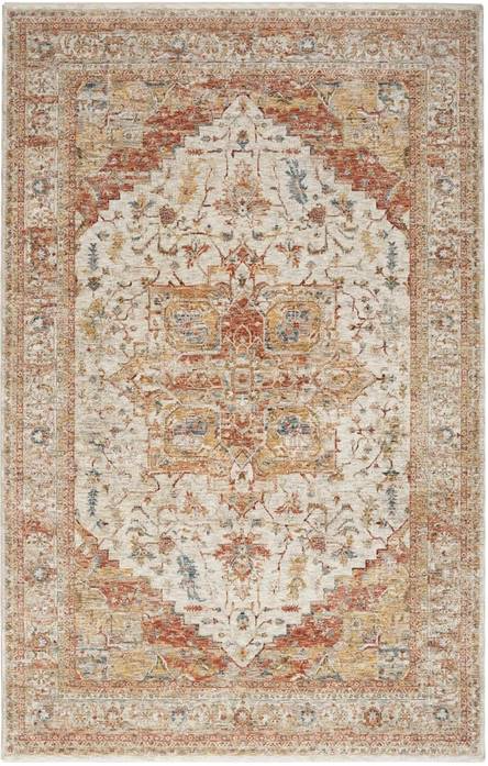 Bring worldly vibes to your space with this vintage rug from the Sahar Collection. The classic medallion design, presented in soft shades of rust, ivory, blue, and gold, is finished with an artful fade for a time-worn look.Read More