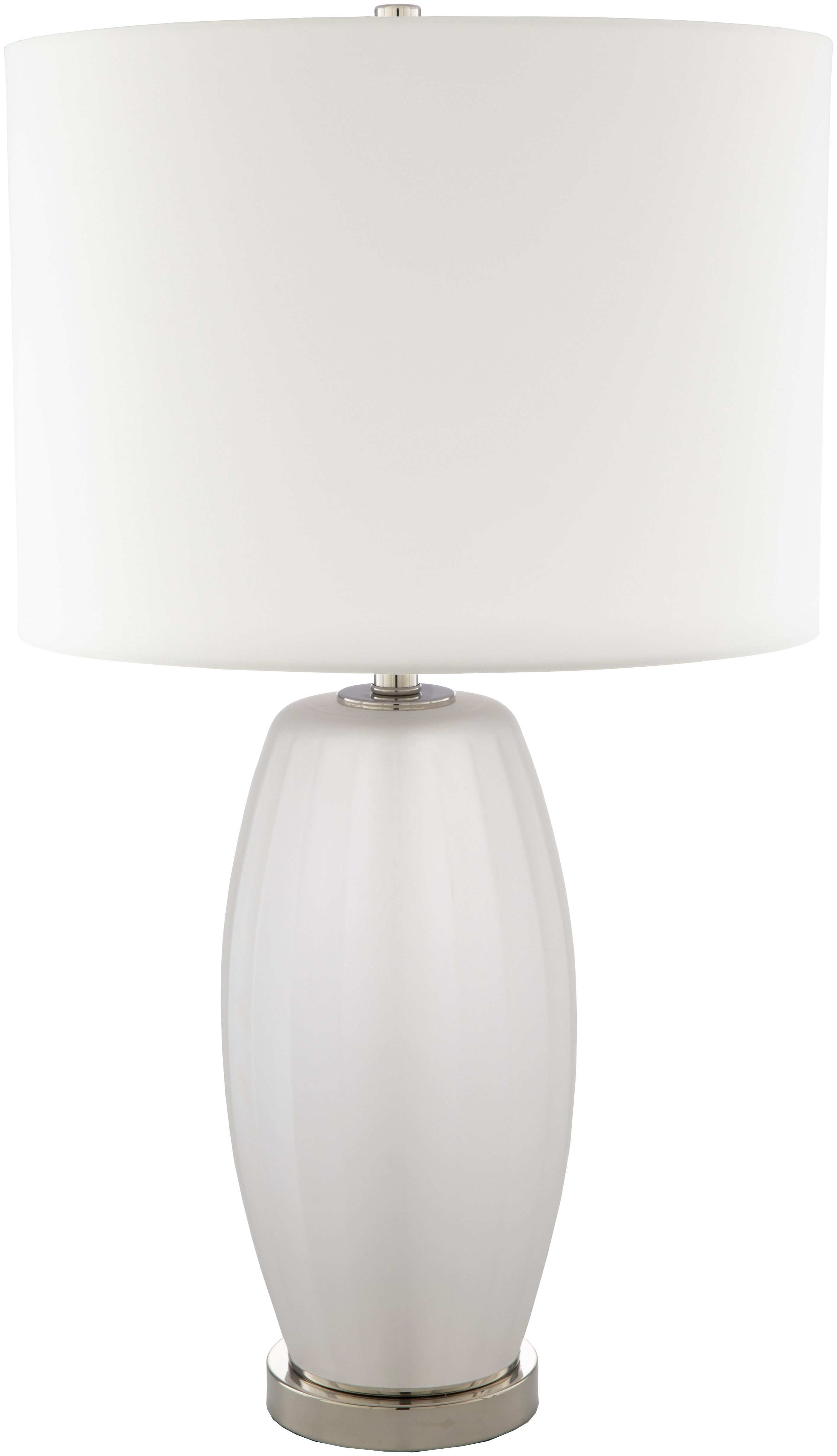 The Surya Frosted Table Lamp features a plated metal base, frosted glass body, and a 3-way switch.Read More